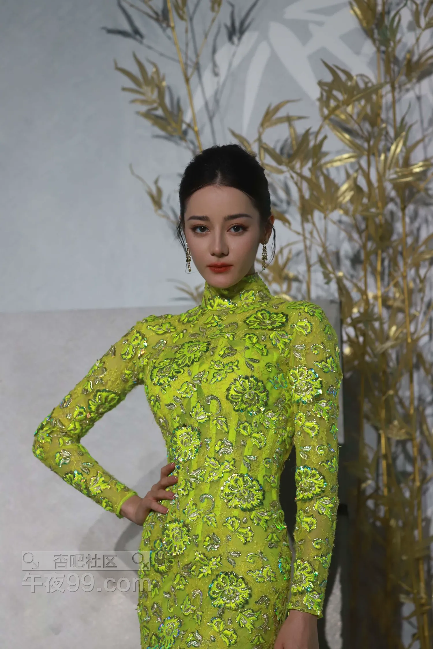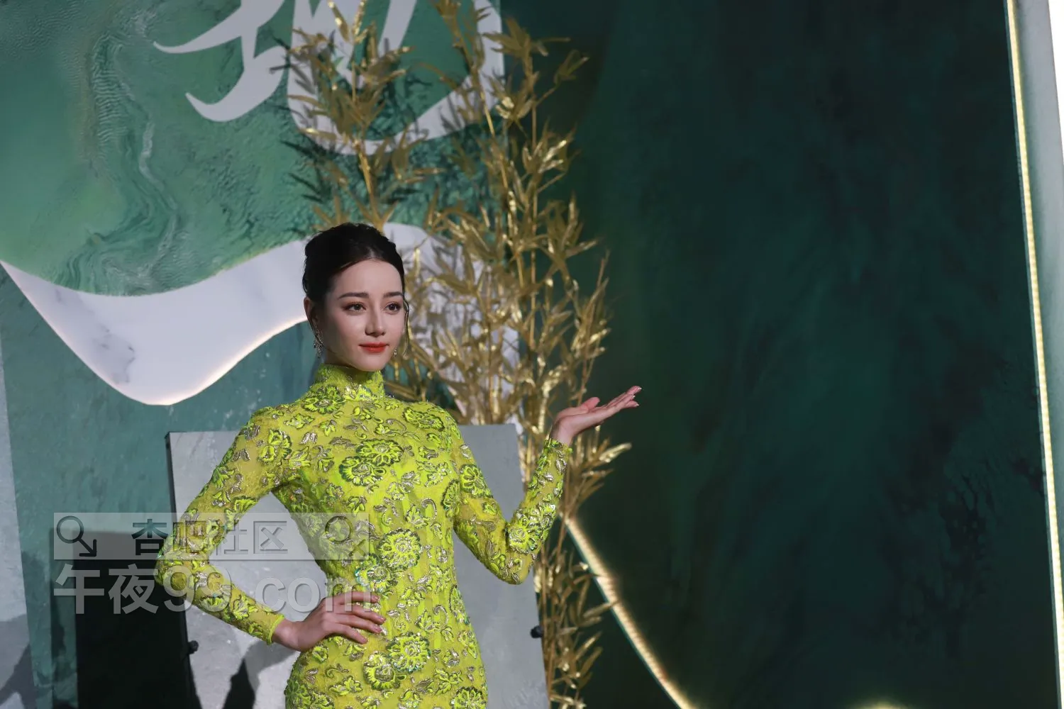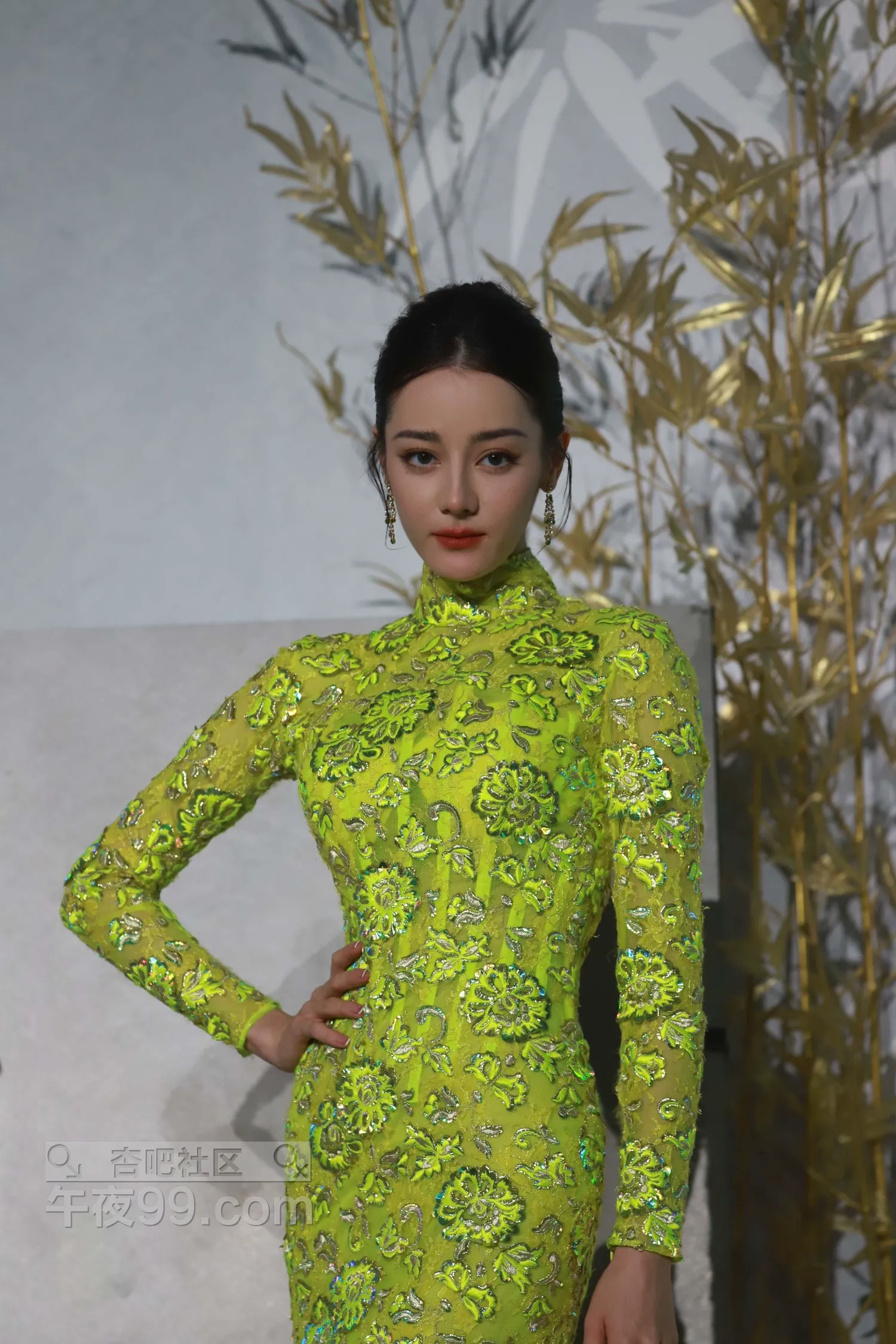 迪丽热巴华脉发布会金色露背拖地旗袍生图【50P】